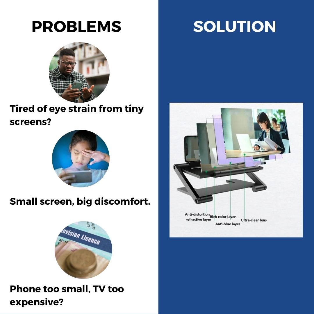 Just unfold the stand, place your phone behind the lens, and enjoy movies, shows, or videos with enhanced brightness and reduced eye strain — no batteries, cables, or apps needed.